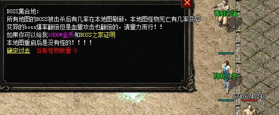 击杀BOSS 比如沃玛教主 红魔教主 祖玛教主 可进入超多BOSS隐藏地图。。。福利?