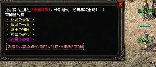 底板是别人的R收费开区版(后面附图),我拿来进行的修复和优化,从1月2号开的群服,,经过个半月的修复与优化,版本无论是各种爆率、各种材料的产出与消耗,甚至是吸金程度都已经很成熟了。群服版本白嫖玩家也可以玩的尽兴。小伙伴们还在火热探秘中!