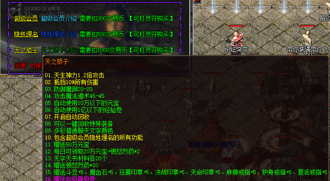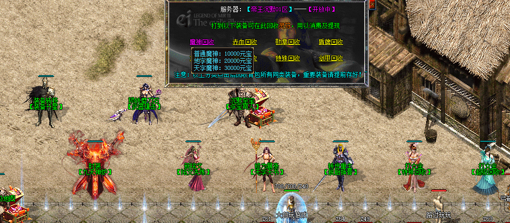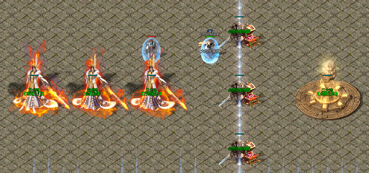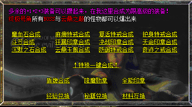 【经典玩法】:特殊打造、回血系统、称号晋级等消费NPC,全在土城顶上一排NPC。