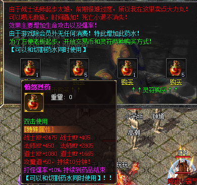 简介:本服战士法师起步难度有点大,特此增加此药水!为了方便老板起步.