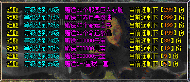 重要提示:切记领取各级别的升级奖励,特别是85级的奖励,可以召唤7条神龙。