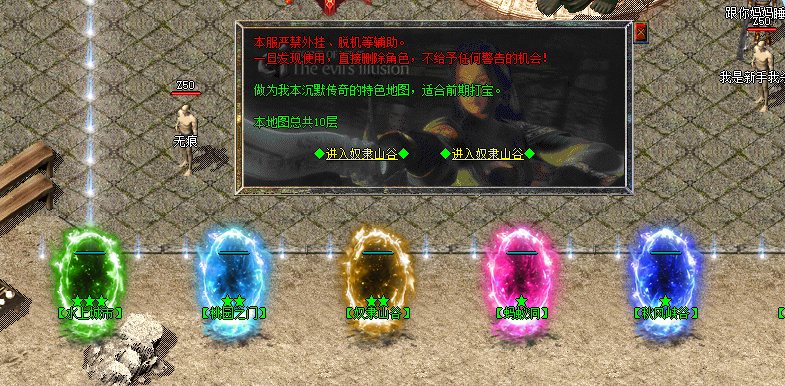 【经典玩法】:地图都有档次级别限制,哪个好,一目了然以此类推进入,每个地图都有BOSS,实力足够就