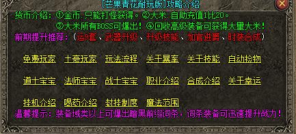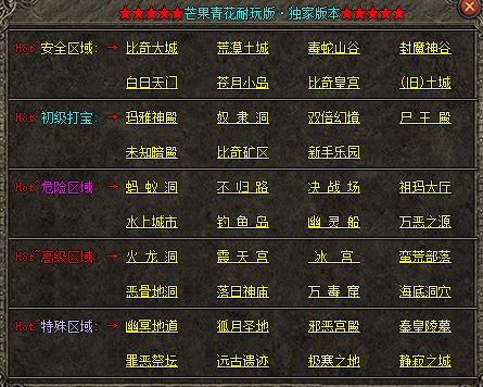新手阶段:玛雅/奴隶洞/新手乐园(爆基础装备+金币)。