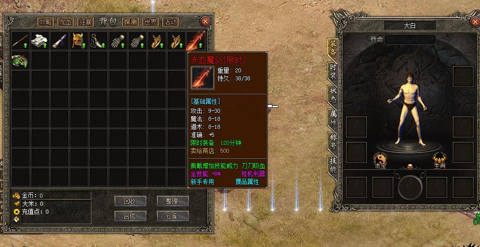 赤血魔剑:前期吸血神器,挂机打宝必备。