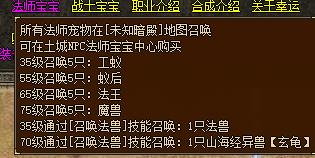 召唤法兽:35级1只,70级升级为山海经异兽【玄龟】(冰冻技能)。
