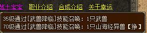35级召唤1只武兽,70级升级为山海经异兽【狰】(沉默敌人)。