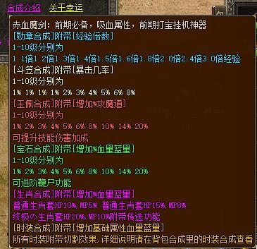 生肖套装:终极生肖套HP+20%、MP+10%,附带传送功能。