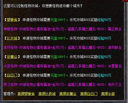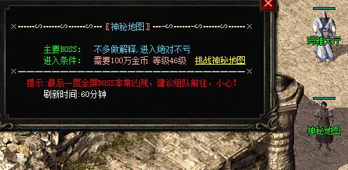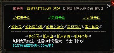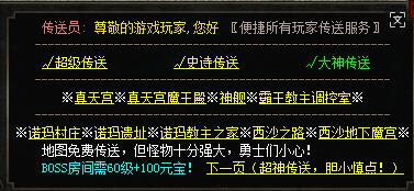 新地图:除176所有地图外还新增了如魔龙城、火龙洞、蚂蚁洞、雷炎洞、狐狸山、失乐园、真天宫、神舰、诺玛、西沙、雪原、冰宫、绝情塔、月河渊、熔岩地狱、酆都城、太山城、皇陵、半兽领地、深虎滩、鬼蜮、乾坤宫、卧龙寺、桃花仙境、万里长城、海底世界等等。不同风景、不同场景、不同NPC、不同技能特效的怪物、不同的打法、爆出不同的物品装备,多重体验,丰富多彩。提示:只有秒传送到BOSS房间收费元宝,防止死亡跑图捡不到装备,要不除非老板请跑图(这才是传奇的乐趣),商城有定位石,可以定位地图,老板使用起来更方便。