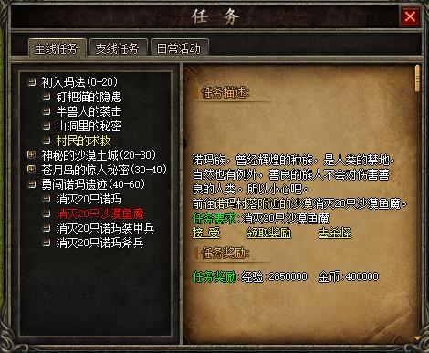 新手上线先做右下角任务按钮中主线任务,可获得大量金币和经验,初期升级和买药的困难轻松度过,第一阶任务大概到18 19这个样子,(任务只是帮助你升级的福利,不能升级全指望任务,但是任务也是必做的)然后土城左上角挂机地图可以选择前期几个地图,不用地图传送跑图,旁边还有BOSS查询,可以直接飞到前期BOSS地图,以及土城右侧的散人地图,神秘地图,玛雅地图,爬塔等等,如果人多,沙宝阁也是个好去处,里面精英怪也是很多的。等人物进一步提升,技能进一步强化,40以后慢慢从魔龙,火龙之类的地图慢慢开始,你的伤害决定你是否可以打的动怪物,此服每一点攻魔道都是特别关键。