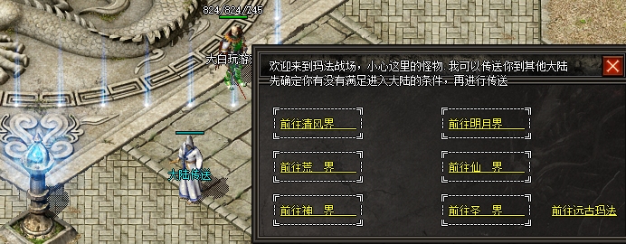 传送升级地图:玛法战场——荒界——神界——???