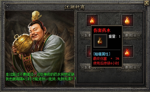 – 对怪增伤 + 1%,人物攻击 + 10,伤害抗性 + 2%,魔宠攻击 + 10%,杀怪经验 + 30%。