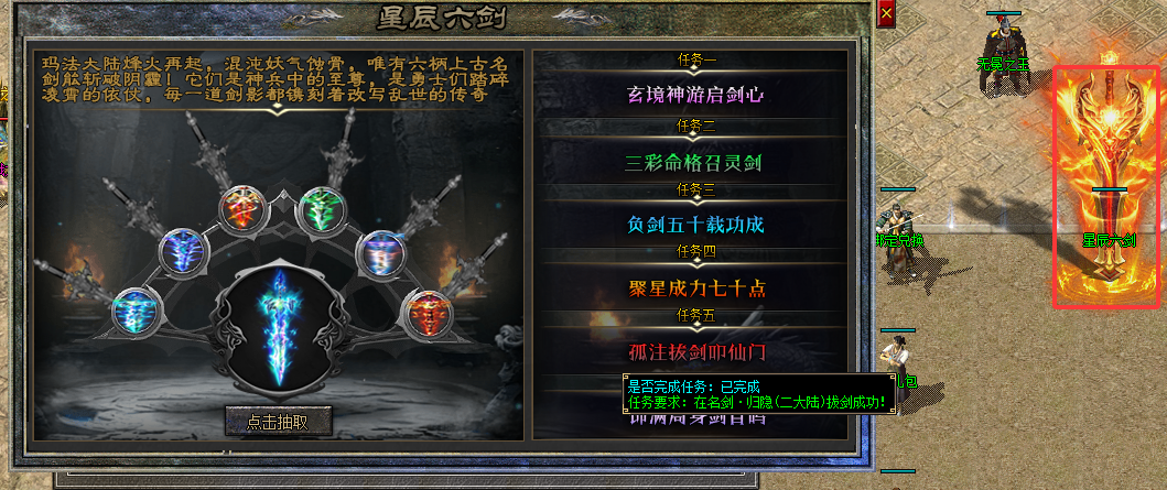 完成此任务可抽取 一大陆星辰六剑 其中之一
