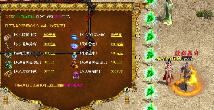 本游戏纯元宝服,白嫖简单,永久道具元宝购买,或者20米一包烟钱即可获得12样永久道具!白嫖回收元宝直接购买即可!
